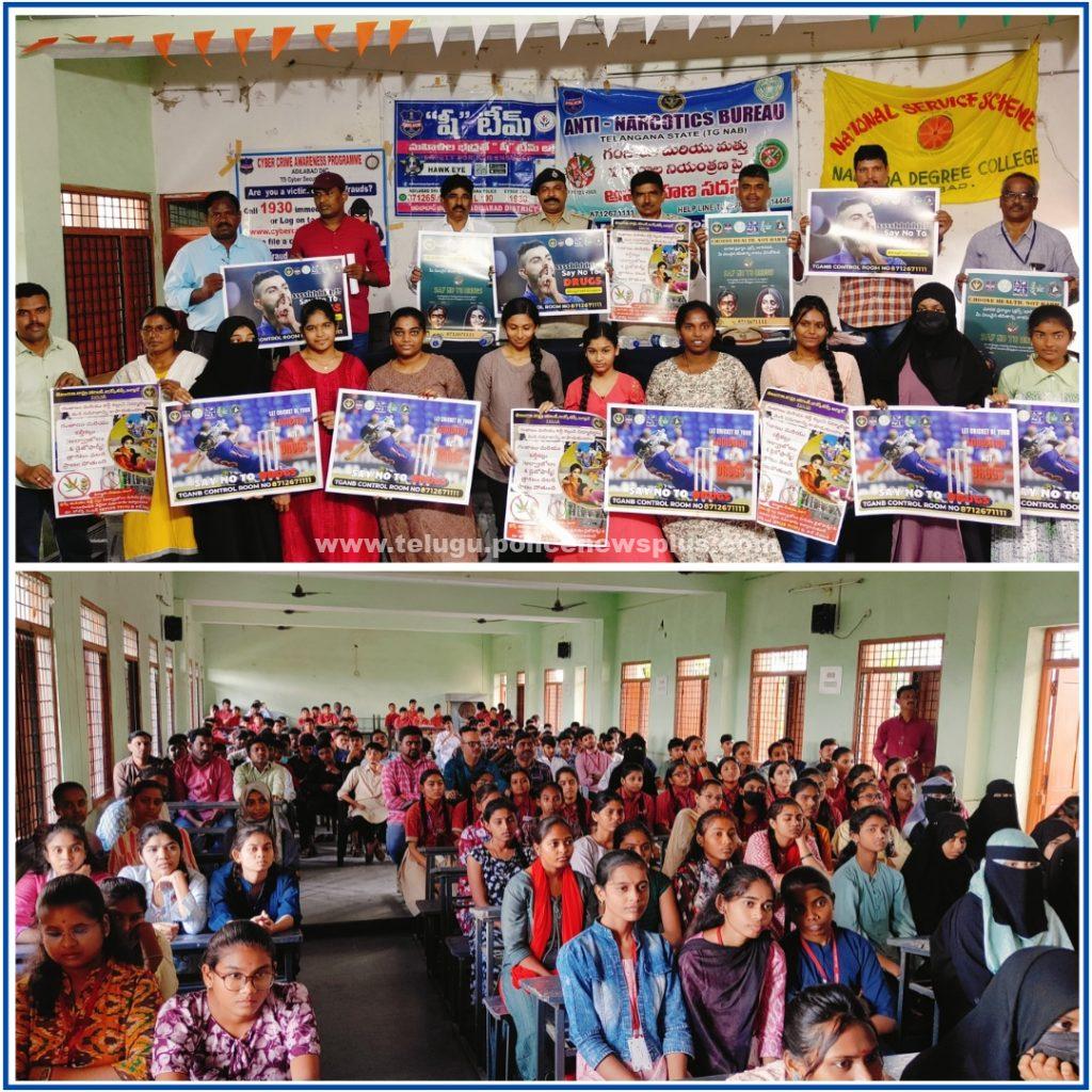 అదిలాబాద్ జిల్లా: నలంద డిగ్రీ కాలేజి లో డీఎస్పీ M సోమనాథం డ్రగ్స్ వల్ల కలిగే నష్టాలు, అనర్థాలు మరియు పరిణామాలు విద్యార్థులకు సవివరంగా వివరించి వారిలో డ్రగ్స్ వల్ల కలిగే దుష్ఫలితాల గురించి అవగాహన కల్పించారు.