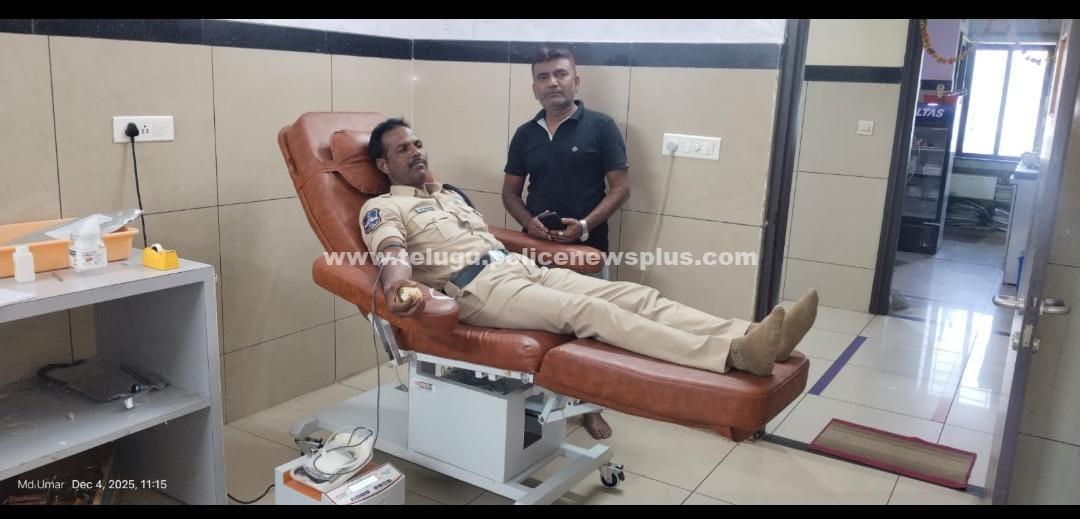 🩸 రక్తదానం చేసి చిన్నారికి ప్రాణదాత: జగిత్యాల జిల్లా కేంద్రంలోని ఓం శ్రీ సాయి ఆసుపత్రిలో పీ. లక్ష్మి (02) అనే చిన్నారి ప్రాణాపాయ స్థితిలో ఉంది. అత్యవసరంగా ‘ఓ పాజిటివ్’ (O Positive) రక్తం అవసరం కావడంతో కుటుంబ సభ్యులు ఆందోళన చెందారు. ఈ విషయాన్ని తెలుసుకున్న దరూర్ క్యాంపు కానిస్టేబుల్ ఉమర్ ఒక్క క్షణం కూడా ఆలస్యం చేయకుండా స్పందించారు.డ్యూటీలో ఉన్నప్పటికీ, మానవత్వాన్నే మొదటి ప్రాధాన్యతగా భావించి, వెంటనే ఆసుపత్రికి చేరుకున్నారు. తన చేతిలో లాఠీ పట్టుకుని విధులు నిర్వహించే కానిస్టేబుల్, రక్తాన్ని దానం చేసి ఒక చిన్నారి ప్రాణాలను కాపాడే గొప్ప సేవ చేశారు.